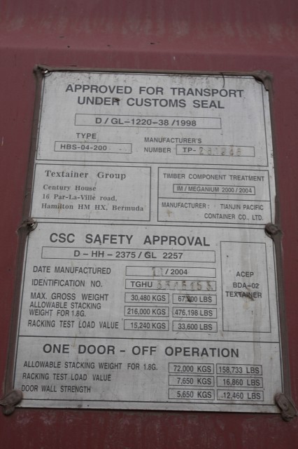 40ftですが、tex 20ftと許容総重量は同じ。